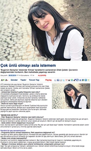 ATV ekranlarında yayınlanan 'Bugünün Saraylısı' dizisinin kadrosuna 'Mahşeri Cümbüş' adlı komedi grubuyla ünlü olan Dilek Çelebi de katıldı. Dizide; evin hizmetlisi 'Elmas'ı canlandıran Çelebi, yeni projesini anlattı...